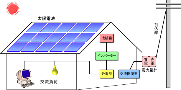 �@���z�d�r �@�@���z���G�l���M�[��d�C�ɕϊ����܂��B �A�ڑ��� �@�@�����J���������A�d���̋t����h�~����ƂƂ��ɃT�[�W�i���Ȃǂɂ��˔��I�ȉߓd���j���z�����܂��B �B�C���o�[�^�[ �@�@���z�d�r�Ŕ��d���������d�͂��𗬂ɕϊ��B�V�X�e���S�̂̉^�]�������Ǘ����܂��B �C���d�� �@�@�d�͂��Z����̕��ׂɕ��z���܂��B �D�𗬊J�� �@�@�V�X�e���_�����ɃV�X�e�����Ւf���܂��B �E�d�͗ʌv �@�@���d�p���[�^�[�F�d�͉�Ђɔ��p����]��d�͗ʂ��v�Z���܂��B �@�@���d�p���[�^�[�F�d�͉�Ђ���w������d�͗ʂ��v�Z���܂��B |